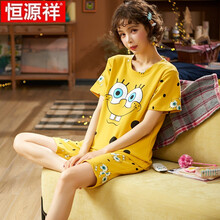 恒源祥春季新品【捡漏特价】睡衣女士夏款夏季纯棉短袖短裤家居服全棉卡通韩版甜美可爱套装 8204海绵宝宝 (女M)建议身高155CM左右体重85-100斤