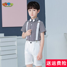 萝卜呗呗 新款夏儿童西装男礼服男花童礼服西装套装男童礼服夏男童礼服套装夏演出服幼儿园西服休闲西装 白色四件套(衬衫+短裤+背带+领结) 130cm...