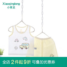小青龙 儿童睡衣夏季纯棉男女宝宝薄款打底背心内衣套装家居空调服 黄小车 58码/90cm(建议80-88cm)