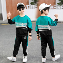 乐可鸭童装男童套装秋装新款3时尚帅气男孩两件套男宝宝卫衣运动裤春秋卫衣儿童运动套装 湖蓝色 150