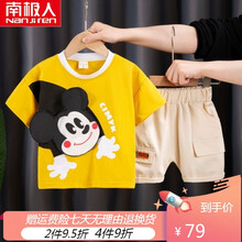 南极人童装男童套装夏季1-3岁宝宝衣服男童女童米奇印花圆领上衣小童短裤两件套儿童半袖男孩短袖t恤潮 黄色 120