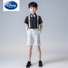 【特价捡漏】迪士尼(DISNEY)儿童打底裤夏薄男童短袖小西装套装夏季小主持人钢琴演出礼服六一儿童节 黑色两件套(衬衫+短裤) 送领结背带 160cm