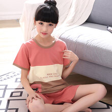 disney/迪士尼品牌同款新品儿童睡衣女孩纯棉短袖短裤套装夏季薄款卡通女童中大童夏天家居服 y067拼接小熊-【女童短袖短裤】 150cm(150cm s码【身高140-1...