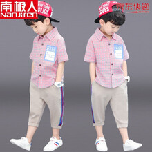 南极人品牌新品 儿童装男童夏装套装2021年新款夏季中大童帅气短袖男孩夏款衣服潮 粉色 130
