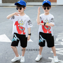 迪士尼(Disney) 品牌童装 奥特曼衣服男童套装短袖纯棉T恤男孩夏季洋气童装儿童夏装潮帅气 白色A款套装【送面罩+手表】 110码【建议身高100cm左右】