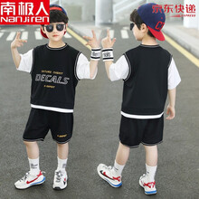 南极人品牌新品 儿童装男童夏装套装2021新款帅气夏季韩版男孩短袖篮球服洋气潮衣 黑色 160