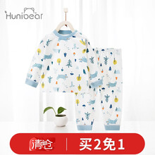 欢喜小熊 宝宝纯棉秋衣秋裤套装打底分体睡衣长袖肩扣衣服婴儿内衣套装 绿色201130 90cm