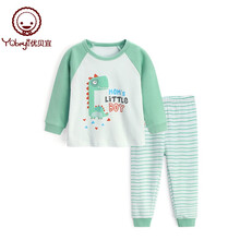 优贝宜 男女童内衣纯棉套装婴儿春秋装 儿童家居睡衣小女孩秋衣裤 82011#灰绿小恐龙 100cm