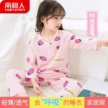 南极人儿童睡衣夏季男童女童内衣套装中大童棉绸睡衣宝宝绵绸空调衫2-4-7-13岁小孩夏天薄款家居服 粉底草莓(长袖) 150码 建议身高140cm左右