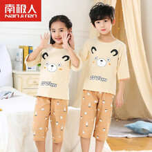 南极人儿童内衣套装夏季新款贴身舒适可爱卡通睡衣七分袖上衣裤子两件套中小大童女宝宝家居服衣服品牌童装男 七分套装卡其布朗熊 130码建议120-13...