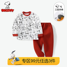 史努比SNOOPY童装儿童内衣套装男女童加厚保暖秋衣秋裤两件套宝宝秋冬夹棉内衣裤 故事空气棉套-黏土色 130CM