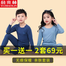 俞兆林儿童内衣套装春秋季无痕男童女童家居服秋衣秋裤中大童睡衣打底衣裤小孩宝宝内衣裤长袖 男女通用-浅蓝色 130码 (建议身高130cm左右