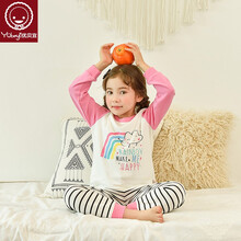 优贝宜 女童内衣套装长袖春季款 儿童休闲春衣裤宝宝洋气春装睡衣 彩虹云朵 90