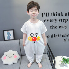 ゞ推荐新品宝宝连体睡衣夏季薄款儿童棉短袖婴儿家居服男童连身小童空调服 白色面超 110cm