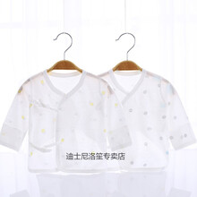ℂ迪士尼【夏季新款】新生儿和尚服纯棉上衣宝宝夏季薄款半背衣初生婴儿0-3月无骨衣服旗舰官方专卖 圆点蓝+奶瓶黄 52cm