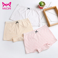 猫人(MiiOW)儿童内裤棉质女童平角内裤中大童宝宝四角底裤小童内裤3条装 组合1紫粉桔三条盒装 110