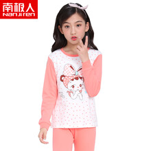 南极人儿童纯棉内衣套装女童秋衣秋裤中大童学生棉毛衫小孩宝宝春秋打底睡衣 蝴蝶结女孩 160(适合身高146-155CM)