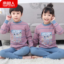 南极人童装夹棉儿童保暖内衣套装男童秋衣秋裤宝宝冬季加厚内衣女童睡衣2-6-7-11岁小孩棉毛衫家居服 JBN紫蓝条 160码 建议身高150cm左右