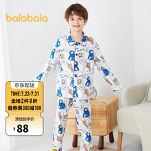 巴拉巴拉儿童睡衣套装男童家居服春装新款中大童小童宝宝纯棉加厚208121171102白蓝色调120