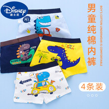 【高品质】迪士尼上新儿童内裤男宝宝棉平角裤卡通小汽车夏季薄款男童宝宝短裤头3岁 卡通恐龙-4条装 110cm(L码-建议体重35-45斤,身高115