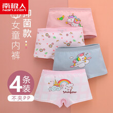 南极人女童内裤平角儿童四角平裤夏季薄款女孩三角裤小童短裤女宝宝2-6小女孩亲肤透气小裤头 彩虹独角兽平角裤-4条装(款) 100cm(m码-建议体重25-35斤,...