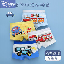 迪士尼童装名品 男童内裤纯棉夏季薄款男宝宝四角小童卡通裤头男孩短裤儿童平角裤 高档消防车组合(夏季款)4条 S码-建议1-3岁 20-25斤