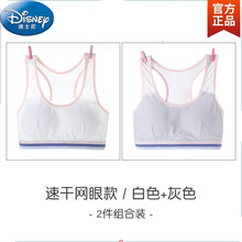 迪士尼旗舰官方店学生运动内衣女防震防下垂速干13女孩15大童小背心夏薄初中生文胸 2件装(白色+灰色) A75(150)