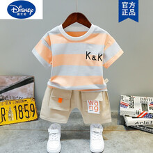 迪士尼自l营(Disney)童装男童套装夏装男女宝宝短袖短裤两件套1-6岁半幼童衣服夏 桔色 100码建议2-3岁 (身高90-100cm)