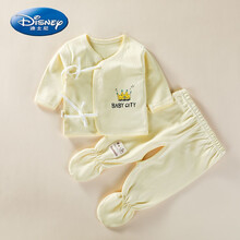 迪士尼/Disney 婴儿和尚服春秋款包脚纯棉夏季新生儿连脚内衣分体刚出生宝宝衣服 (春秋款)黄色皇冠 52码#建议0-2个月
