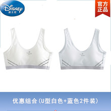 迪士尼旗舰官方店少女内衣初中学生9-14岁女童纯棉文胸女孩网眼吊带夏发育期文胸 白色+蓝色(2件装) M码(适合75-90斤)