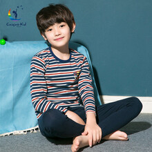 彩桥儿童内衣套装精梳棉男童秋衣秋裤宝宝棉毛衫男孩睡衣中大童薄款秋衣套装 海军蓝 140cm