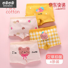 巴拉巴拉旗下BaDi新品 儿童内裤女童夏季薄款平角棉裤小女孩四角三角裤中大童宝宝短裤小孩穿的 黄色小熊-4条装 95cm(M码建议3-5岁25-35斤【按照体重选