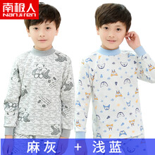 南极人儿童纯棉内衣套装男童中大童秋衣秋裤宝宝小孩中高领打底棉毛衫秋冬童装 麻灰+浅蓝 110(建议身高95-105CM)