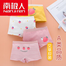 南极人高端轻奢女儿童内裤女童平角中大童宝宝夏季薄款短裤女孩三角四角裤12岁旗舰官方专卖 草莓女孩平角(纯棉款)4条 2XL码-建议10-12岁 59-75斤