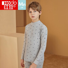 红豆男童纯棉A类秋衣秋裤宝宝小孩男孩棉毛衫儿童全棉春秋季可爱卡通印花薄款打底保暖内衣套装 QY131半高领浅麻灰 160