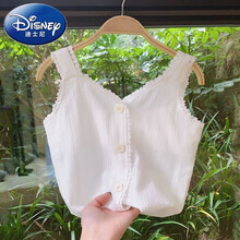 迪士尼儿童装吊带背心外穿夏季女童洋气棉料花边白色上衣宝宝薄款吊带衫 白色 140