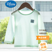 迪士尼 宝宝夏季空调服内衣婴儿童薄款上衣长袖纯棉T恤套头单件超薄0-2岁小孩子宝宝夏天穿的内衣裤 绿色 66码建议身高59-66cm