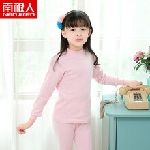 南极人(Nanjiren) 儿童内衣套装纯棉女童中大童提花中圆领宝宝秋衣秋裤加厚棉毛衫 粉红-中领 160