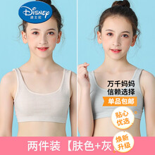 迪士尼0-5-15岁少女内衣发育期小背心初中生小女孩运动文胸女童夏季12岁胸罩薄款女孩子穿的内衣裤 两件装(肤色+灰色) 均码(70-120斤)