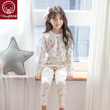 优贝宜 热力棉 女童内衣套装宝宝秋装睡衣儿童磨毛加厚衣服中大童 82480#小花朵 110cm