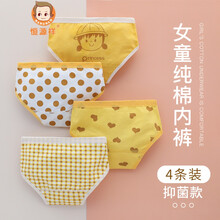 恒源祥女童内裤纯 棉三角儿童四角短裤小女孩女宝宝平角裤头夏季薄款12岁小学生小孩子夏天穿的 柠檬女孩(三角纯棉)4条 -款 S码1-3岁建议15-25斤