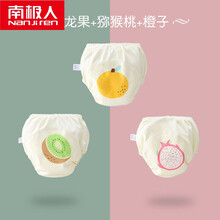 南极人宝宝训练内裤防水可洗防漏纯棉隔尿尿布裤婴儿如厕尿布兜学习裤夏小孩子夏天穿的 3件装-火龙果+猕猴桃+橙子 S码(适合0-18斤宝宝)