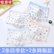 恒源祥官方旗舰 男童内裤儿童纯棉宝宝平角裤中大童网眼透气全棉四角短裤薄款夏季 【网眼2条】+【四季2条】 110cm(L码/32-38斤)