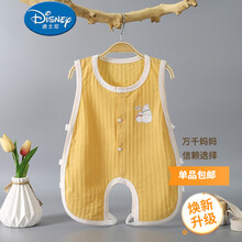【特价】迪士尼0-3岁夏季婴儿琵琶哈衣新生儿透气薄款衣服纯棉无袖连体衣男女宝宝爬服夏天婴儿宝宝凉快舒 两只小熊黄色琵琶哈衣(纯棉) 80建议身...