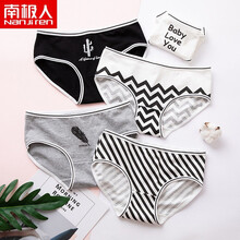 南极人少女纯棉内裤10/11/12/13/14/15岁中大童女孩三角裤学生短裤内衣小孩子穿的 5条黑白羽毛 XL