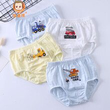 恒源祥儿童纯 棉内裤男童宝宝全 棉弹力三角裤无骨合缝平角内裤春秋4条装小孩子小学生夏天穿的 男工程车三角4条装 150cm