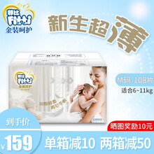 菲比(Fitti)金装呵护纸尿裤婴儿纸尿裤尿不湿秒吸舒爽男女通用新生儿超柔亲肤尿不湿S/M/L/XL M码(108片)