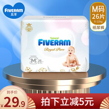 五羊(FIVERAMS)婴儿纸尿裤皇家纯净超薄拉拉裤柔软干爽透气尿不湿高端出口装新生儿宝宝学步成长裤 纸尿裤M码26片