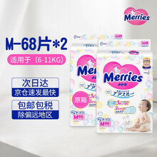 【自营仓发】花王妙而舒Merries 新生儿婴儿纸尿裤 新生儿尿不湿增量装(日本工厂直供) 纸尿裤M68片*2包(原箱)