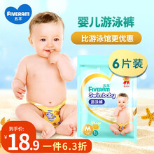 五羊(FIVERAMS)婴儿游泳裤一次性防水纸尿裤男女宝宝专用游泳尿不湿泳裤独立包装 M码*6片装